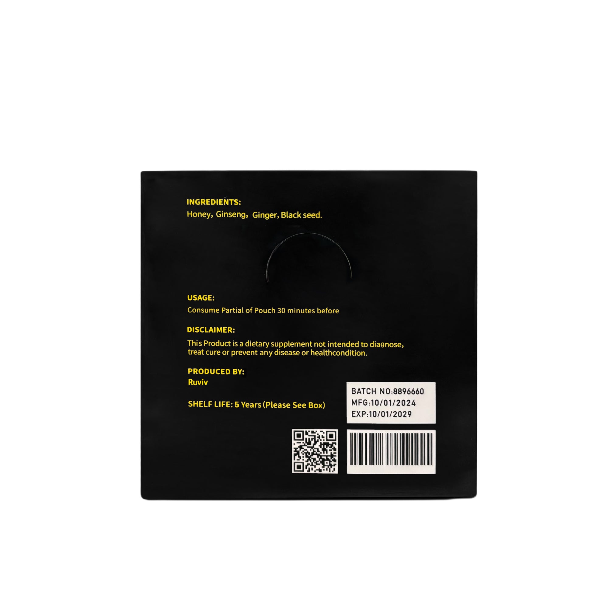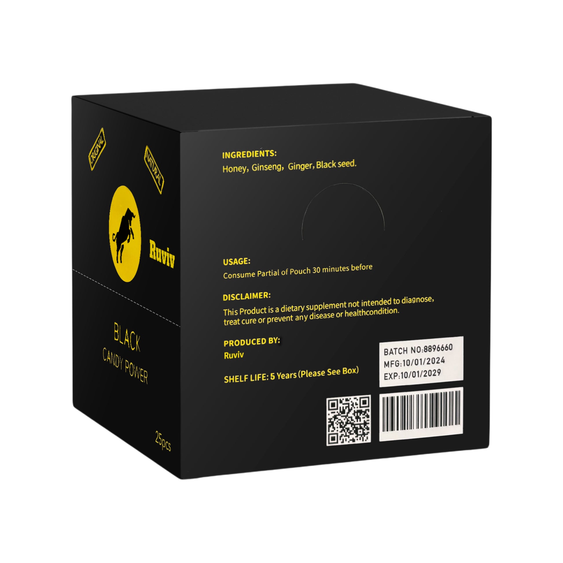 Experience the natural benefits of this Honey Candy, enriched with Black Seed, Ginseng, and a blend of carefully selected herbs designed specifically for men. Each box contains 25 pieces, offering a convenient and delicious way to support vitality and overall wellness. Black Seed and Ginseng are traditionally valued for their energizing properties, while the natural herbs work synergistically to promote balance and stamina. Perfect for daily use, these candies provide a discreet and pleasant boost to your routine.